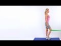 Stand up, and tie an exercise band around a table leg and the other end around the back of your knee. Your feet should be facing forwards, knee slightly bent, and make sure the band is taut. Keeping your hips knees and feet in line, straighten your leg against the resistance of the band, and slowly return to the starting position. Go to www.rehabmypatient.com for more information.